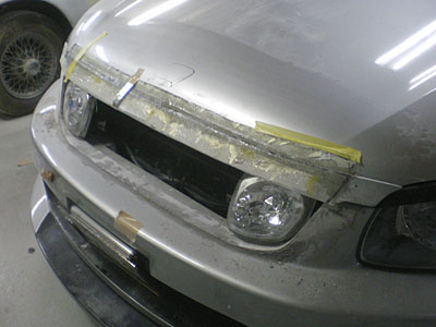 ◆シトロエンCX(全塗装)フロントバンパーにフォグランプの下穴を開けました。