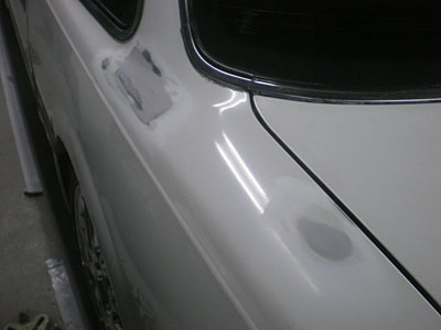 ◆セリカ(WRC仕様) クォーターのパテの部分に仮のサフェーサーを塗りました