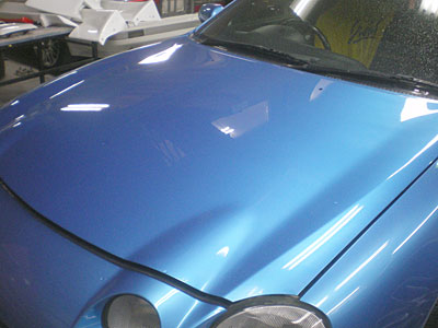 ◆セリカ(フード塗装)フード磨きをしました、明日サイドステップを修理したら完成です。