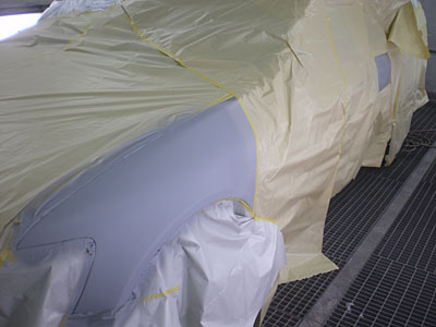 ◆ステージア(全塗装)本体下地作業をしています、サフェーサーを入れました
