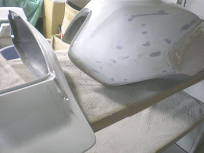◆GS1200SS(バイク塗装)つや消しのオーバークリヤをしました、タンクは磨き作業中です