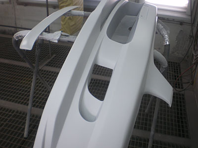◆ステージア(全塗装)エアロ加工が概ね終了しました。塗りわけの塗装をしました