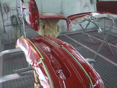 ◆プジョー106(全塗装)本体とボンネットは中間磨きまで終了、ドア・リヤゲート・バンパー等塗装しました。明日は磨いて組み付ける予定です。