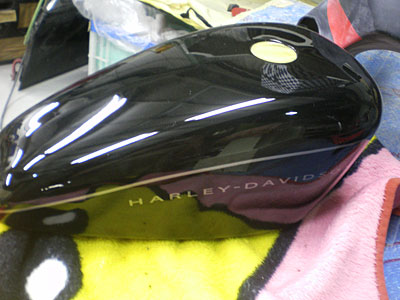 ◆ハーレータンク(バイク塗装)塗装をし、磨き作業をしています。