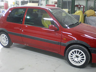 ◆プジョー106(全塗装)現在は中間磨きと組み付けがほぼ終了しています。あとは最終磨きとガラスコーティングを金曜日にする予定です。