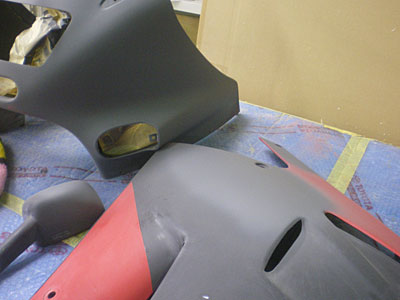 ◆GSX1200(カウル補修)アッパーカウルにFRPをプライしています。