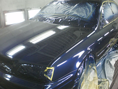 ◆スカイライン(事故修理)部品が入荷しました、バンパーにサフェーサーを入れました