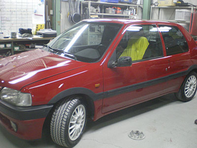 ◆MGミジェット(全塗装)フェンダーがだいぶ形になってきました、フードとボンネットも整形作業をしました