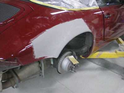 ◆ポルシェ993(補修塗装)分解をして下地処理をしています。