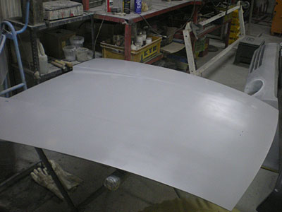 ◆MGミジェット(全塗装)フェンダーがだいぶ形になってきました、フードとボンネットも整形作業をしました