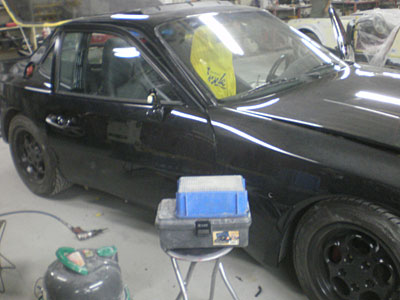 ◆MGミジェット(全塗装)フェンダーがだいぶ形になってきました、フードとボンネットも整形作業をしました