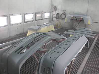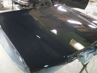 ◆ベンツ(全塗装)ボンネットとミラー等を塗装しました。バンパー・ドアパネル等はサフェーサーが入りました。本体は磨き作業に入りました。