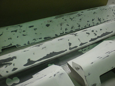 ◆ポルシェ944(全塗装)サイドステップの塗膜剥ぎました。小物を磨き組付けをしています。