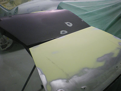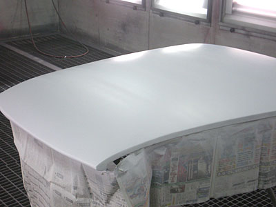 トランクとボンネットはこちらも面を見るための1回目のサフェーサーが入りました。