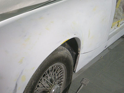 ◆セリカ(WRC仕様) クォーターのパテの部分に仮のサフェーサーを塗りました