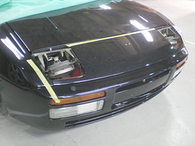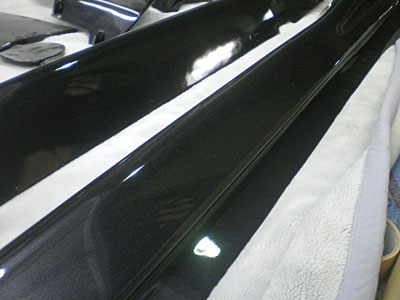 ◆ポルシェ944(全塗装)フロント周りを組付けています。サイドステップを磨いたのでこれで全てのパーツが中間磨きまで終わりました。