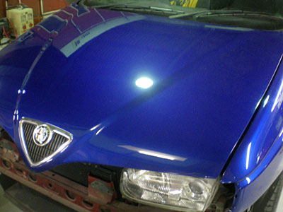 ◆アルファロメオ145(全塗装)組み付け作業があと少しです。明日組み付け完了後に最終磨きとガラスコーティングをします