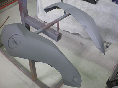 ◆ポルシェ964(全塗装)昨日本体を塗装しました、ボンネット・小物にサフェーサーが入りました