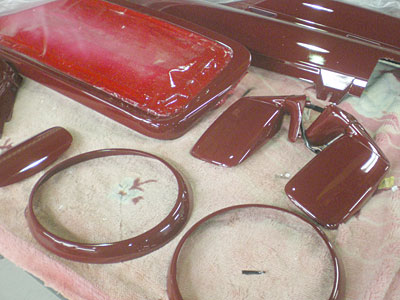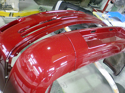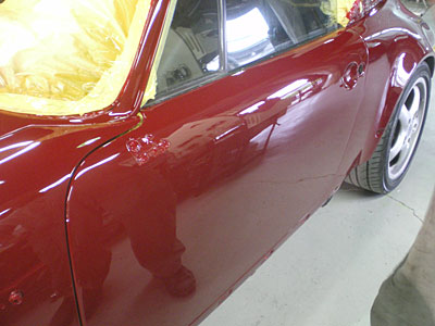 ◆ポルシェ964(全塗装)本体とフード類を本日ダブルクリヤしました。本体は磨き作業に入りました。バンパーと小物類は中間磨きまで終了しています。明日にはすべての中間磨きが終了する予定です。
