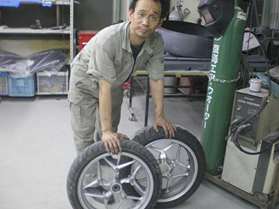 ◆BMW R1200R ロードスター(バイク塗装)ホイールを外しました。