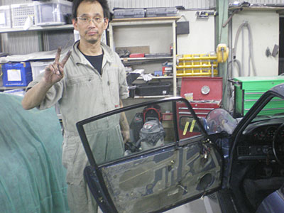 ◆ポルシェ964(全塗装)フロントガラスをはめました。