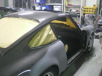 ◆ポルシェ964(全塗装)ドアを外しました、フード等を塗装しました