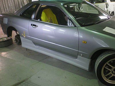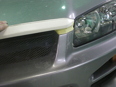◆スカイライン(全塗装)グリルを加工しました。サイドステップを仮合わせしました。