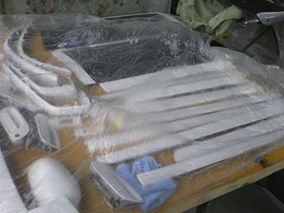 磨いたパーツは埃・傷防止のためにビニールで養生してあります。