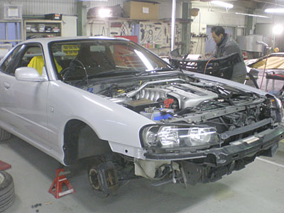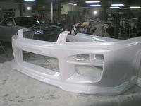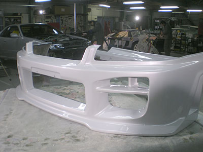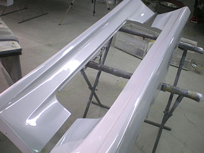 ◆スカイライン(全塗装)ガラスを組みました。午前中にフロントバンパーとサイドステップを塗装。午後から磨き作業をしました。