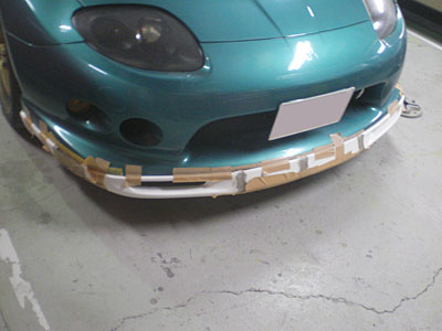 ◆FTO(バンパー修理)フロントスポイラーを大まかにカットしてつなぎました。