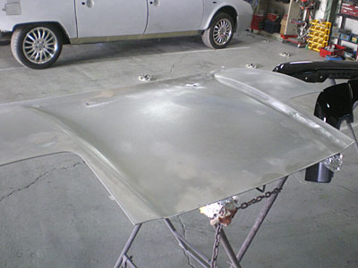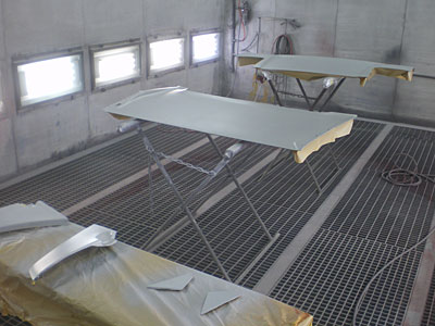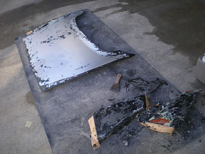 小物の下地をしています。ボンネット・トランク・ピラーは剥離完了し、EPプライマーを入れました。