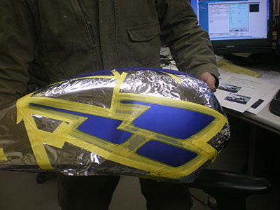 ◆GSXR750(カウル補修)次は塗り分けラインを決めますので、オーナー様の御来店をお待ちしています。