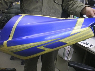 ◆XJR(バイク塗装)タンク、シートカウルのラインを引きました。