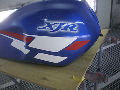 ◆XJR(バイク塗装)塗り分けとステッカー貼りが終わりました。