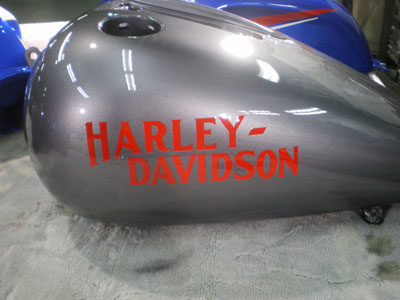◆ハーレー(バイク塗装)オーバークリヤをし、磨いています。明日完成の予定です