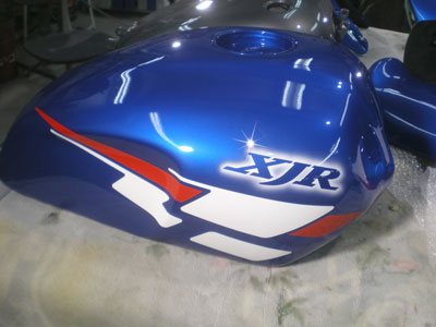 ◆XJR(バイク塗装)オーバークリヤをし、磨いています。明日完成の予定です