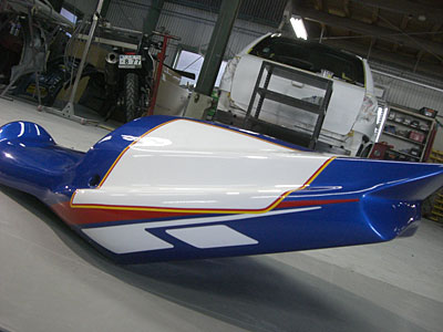 ◆GSXR750(カウル補修)次は塗り分けラインを決めますので、オーナー様の御来店をお待ちしています。