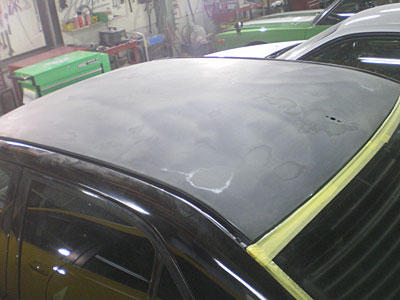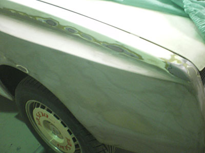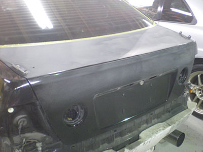 ◆アルテッツア(全塗装)下地作業中です。ボンネットはサフェーサーを吹きました。