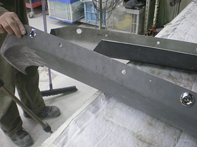 ◆GSXR750(カウル補修)次は塗り分けラインを決めますので、オーナー様の御来店をお待ちしています。