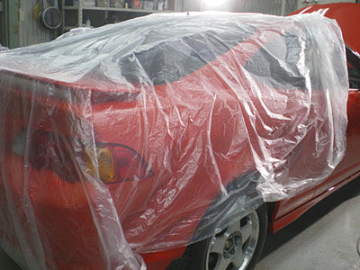 ◆CX (全塗装)単体部品の塗装準備をしています、バンパー等修正しています