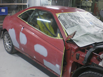 ◆アルファロメオGTV(全塗装)前後バンパー、ボンネット等塗装しました。磨き作業に入りました。本体の下地作業がほぼ終了しました。明日には本体の塗装をしたいと思っています