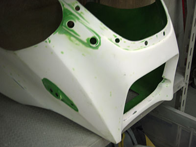 ◆NINJA(バイク塗装)アッパーカウルの塗装を取っています。
