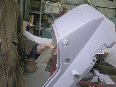 ◆セリカ(WRC仕様) 左フェンダーの成形中です。仮のサフェーサーを入れました。
