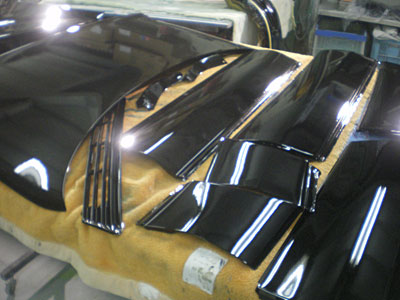 ◆ウインダム(全塗装)本体の磨き作業が終わりました。リヤドアを磨いて組付けました。小物の塗装が全て終わりました。