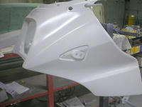 ◆GSXR750(カウル補修)次は塗り分けラインを決めますので、オーナー様の御来店をお待ちしています。