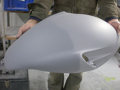◆NINJA(バイク塗装)アッパーカウルはEPプライマーを塗りました。タンク以外のパーツにサフェーサーが入りました。