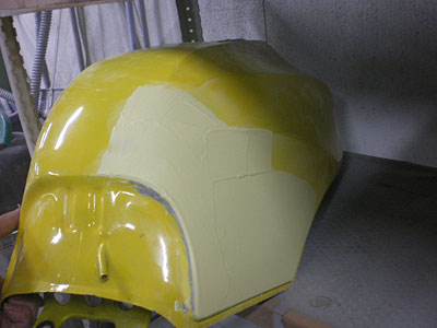 ◆セリカ(WRC仕様) 左フェンダーの成形中です。仮のサフェーサーを入れました。