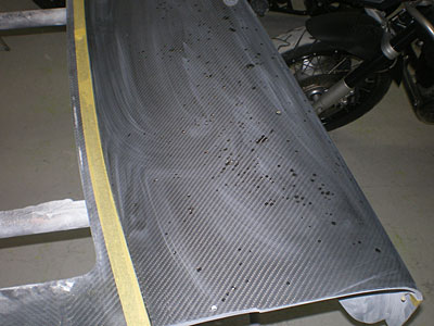 ◆GSXR750(カウル補修)次は塗り分けラインを決めますので、オーナー様の御来店をお待ちしています。