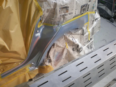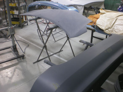◆セリカ(WRC仕様) 左フェンダーの成形中です。仮のサフェーサーを入れました。