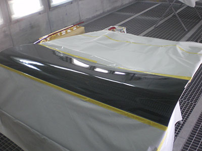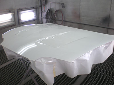 ◆スープラ(事故修理)ボンネットに白を塗装しました。